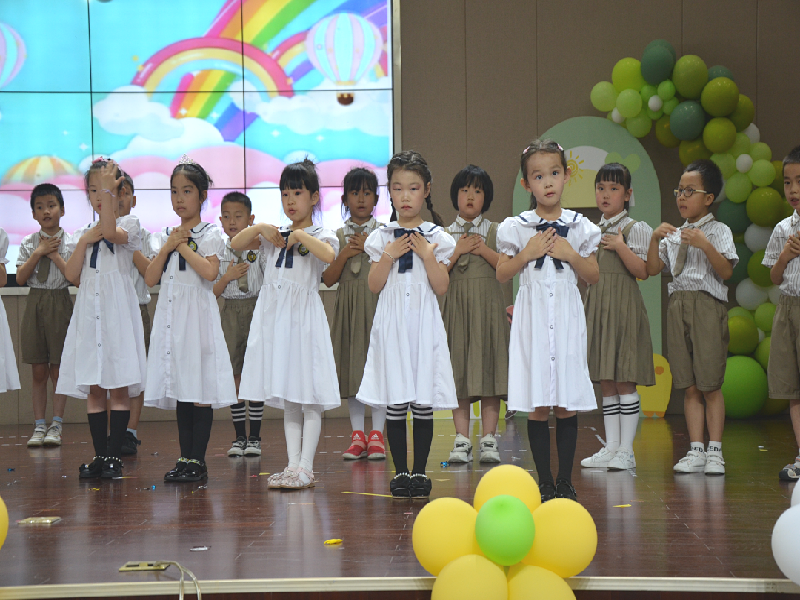大一、大五班的孩子们用手语歌《把爱传出去》给亲爱的幼儿园送上生日祝福。