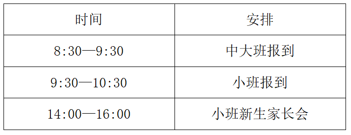 中大班和小班幼儿的报到时间安排如下: