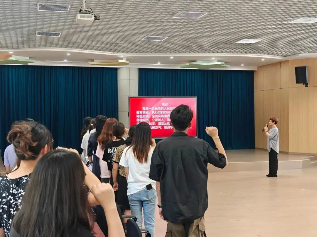 为迎接第39个教师节活动,同里幼儿园全体教师们围坐在一起,老师们在庄严的宣誓中表达了对祖国的热爱和对教育事业的忠诚。
