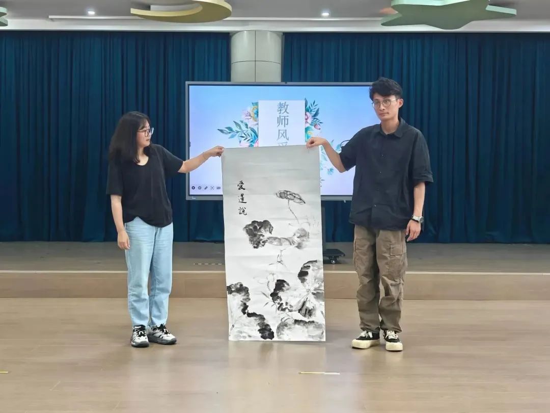 同里幼儿园的夏芳老师展现了自己的画作《爱莲说》。立德树人清风拂,宣纸落墨听廉声。端正清丽的字迹,敬廉崇洁的画作,一笔一划都是教师对廉洁的深刻感悟。