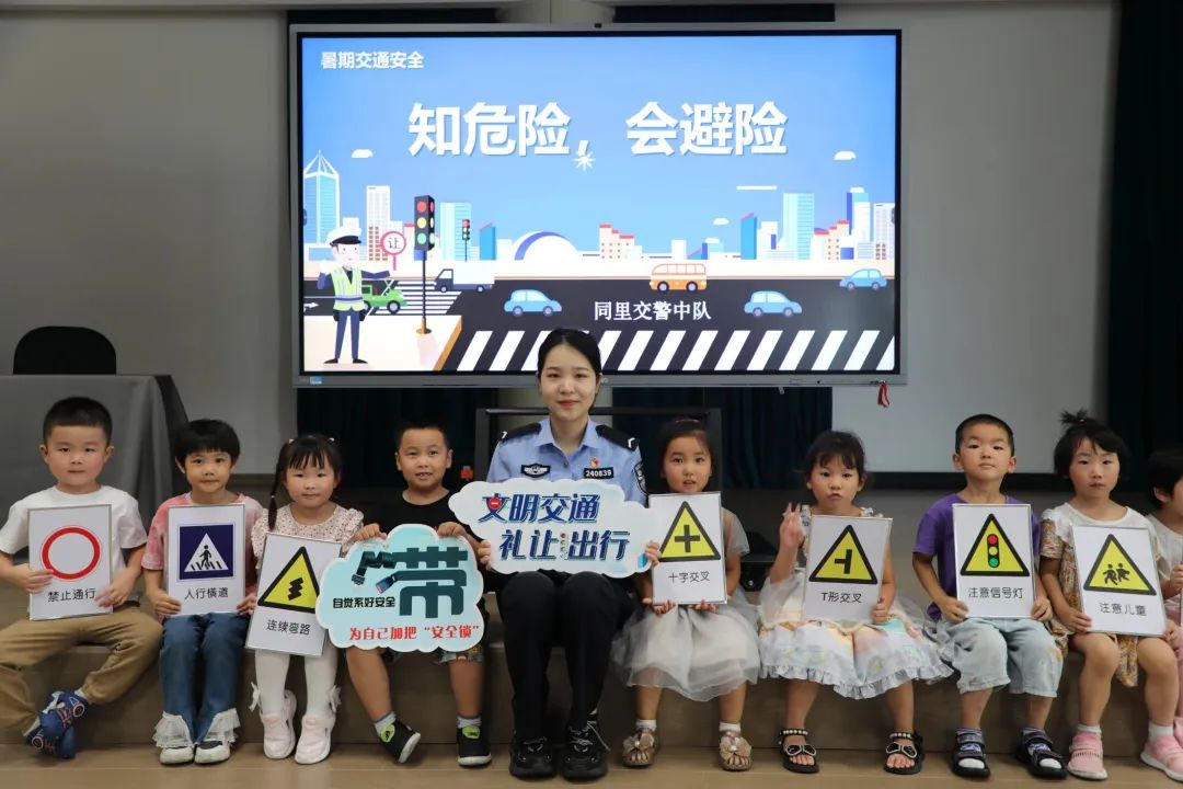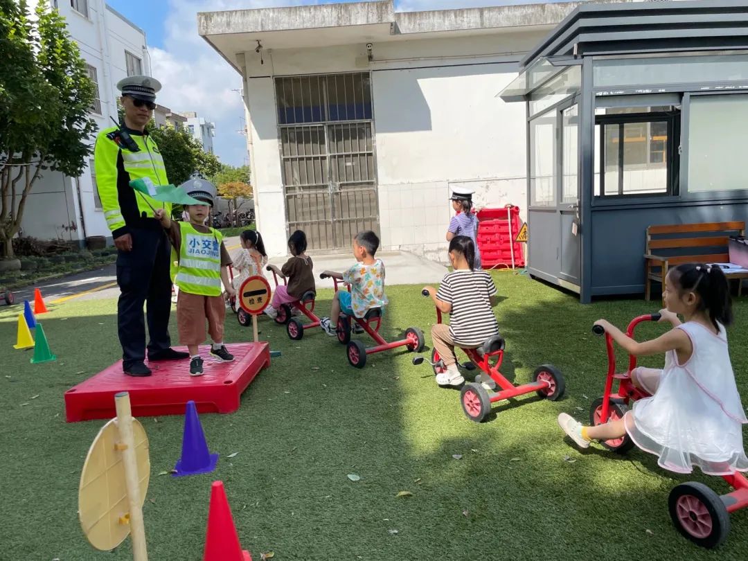 为了让小朋友们更加了解交通安全知识,交警中队为孩子们提供了生动有趣的交通安全讲座。除此以外,小朋友还化身小交警,在交警叔叔的协助下,一起模拟操作停车、左转、右转等日常简单的交警指挥手势。