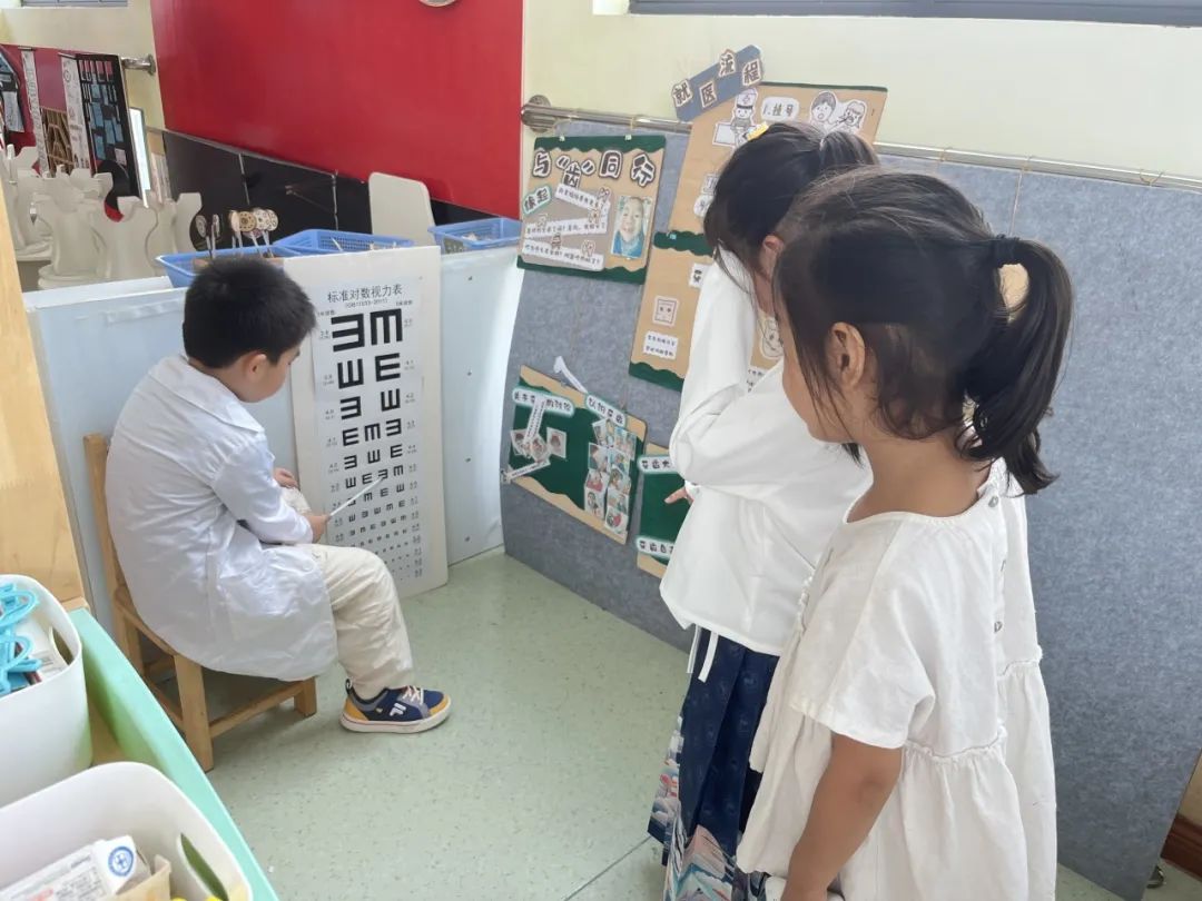 今天的角色游戏,孩子们变身小小眼科医生探索奇妙大"视"界。他们为同学们检测视力,学习眼科健康小知识,让大家从小养成爱护眼睛的好习惯,用明亮大眼睛感受世界的美妙。
