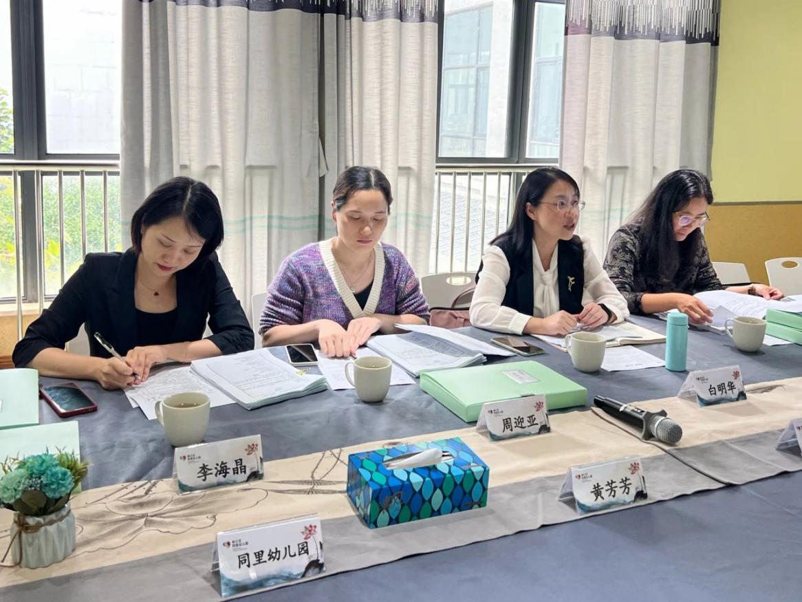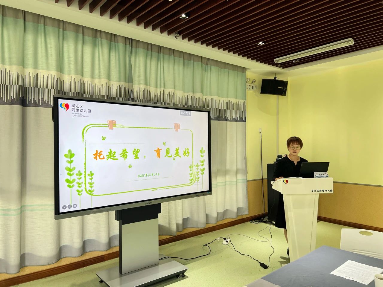 同里幼儿园陈雯园长以“托”起希望,“育”见美好为主题进行了现场汇报,她从机构设置、人员管理、保育照护、安全健康、运营管理等几个方面介绍了同幼托育工作的特色及亮点。聆听汇报后,评估组专家们对同幼根据自身优势因地制宜的发展给予了充分肯定。